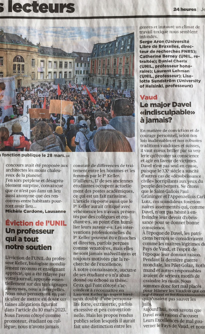 - Eviction del'UNIL. Un professeur qui a notre soutien. 24heures.ch (6-7