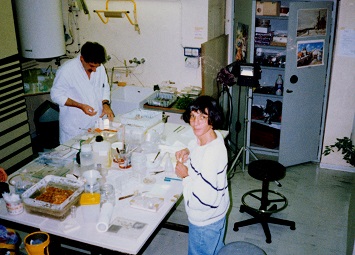 Au labo à Villetaneuse en 1993 (Christine Errard à droite) :