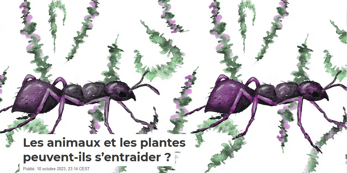 Céline Leroy. Les animaux et les plantes peuvent-ils s’entraider ? , theconversation 10 octobre 2023. Article très intéressant sur le mutualisme entre plantes et pollinisateurs, les fourmis qui protègent les plantes.