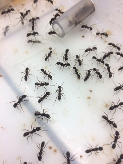 - Après la récolte, les fourmis ont été conservées dans des nids artificiels au LEEC, dans la photo nous pouvons regarder des ouvrières.