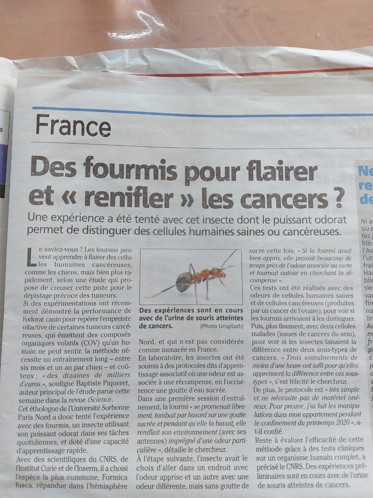 fourmis capables de repérer les cancers (11 mars 2022, La Dépèche)