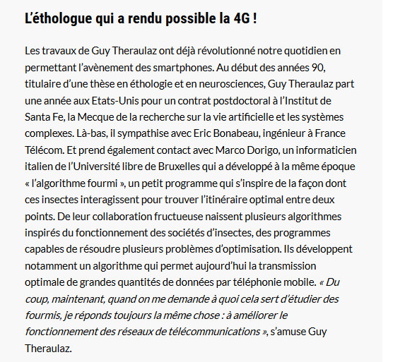 - Thivent, V. (2018) Guy Théraulaz, le père de la 4G qui étudie