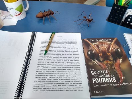 Devant le livre Les guerres secrètes des fourmis. Il faut choisir entre une thèse à lire et le livre .. (mail février 2020)