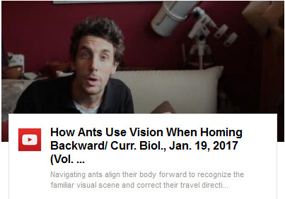 et une vidéo : How Ants Use Vision When Homing Backward/ Curr. Biol., Jan. 19, 2017 (Vol. 27, Issue 3)