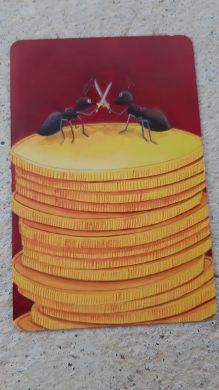 Des fourmis dans le jeu de société Dixit qui se battent en duel