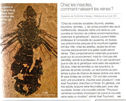 Science & Vie, juillet 2023, p.125. Avec interviews de Laurent Keller et Axel