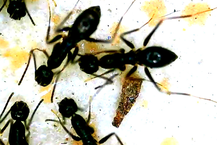 Paratrechina longicornis, fourmi invasive en vidéo au Togo. Les fourmis sont tout de suite attirées par les pièges qu'ils ont posés.