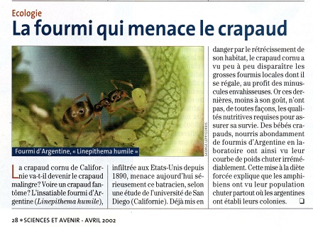 qui menace le crapaud (Sc et Avenir, avril 2002)