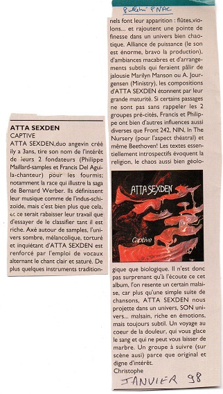 de chanteurs Atta sexdens (Bulletin FNAC janvier 1998). Voir Poésie
