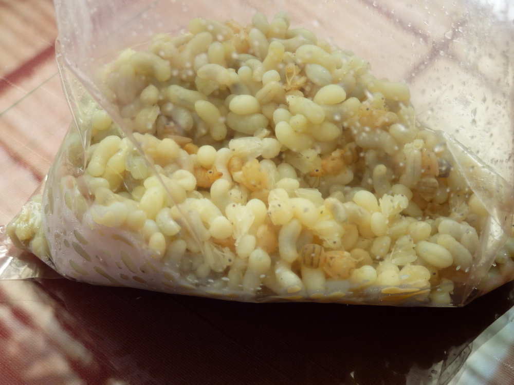 des larves mal venues ou malades. Même la reine s'est laissée filmer