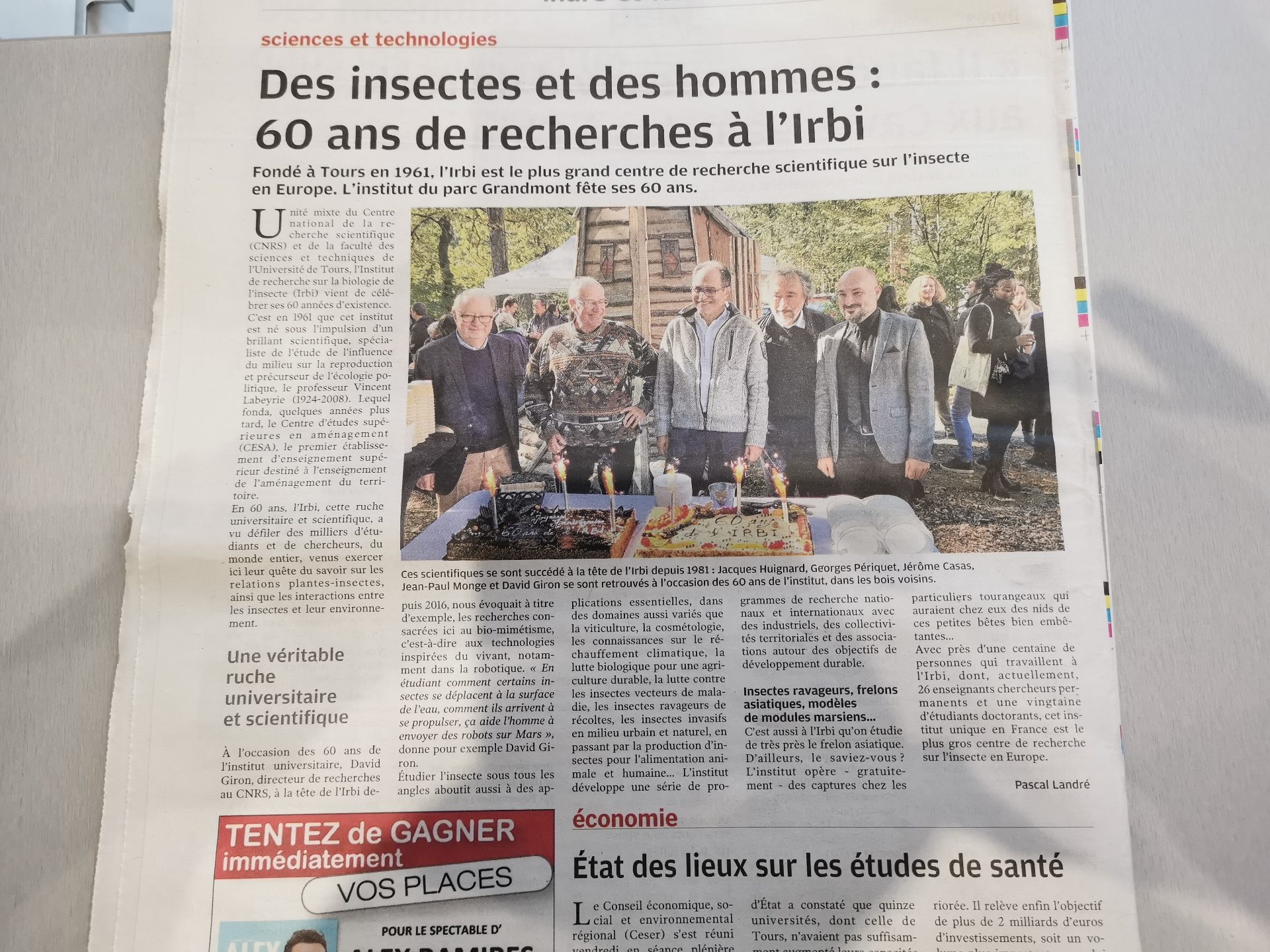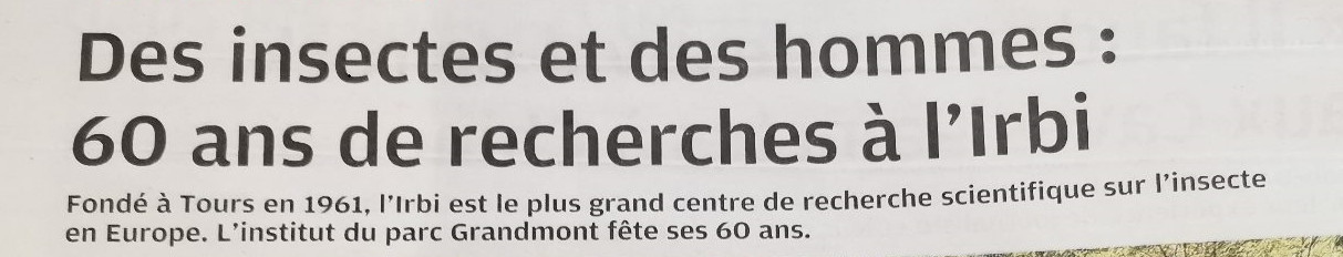 Les 60 ans de l'IRBI (Institut de Recherche sur la Biologie de l'Insecte) à Tours le 15 octobre 2021. Rappelons qu'à l'IRBI il y des personnes qui travaillent sur les termites, les forficules, les frelons et les fourmis.