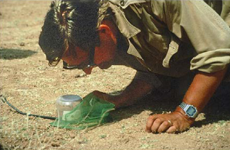 Dans L'essentiel de la Science n°54, Sept-Oct-Nov 2021. Pas si bêtes les fourmis ! Antoine Wystrach qui place un piège sur la route des fourmis du désert Cataglyphis.