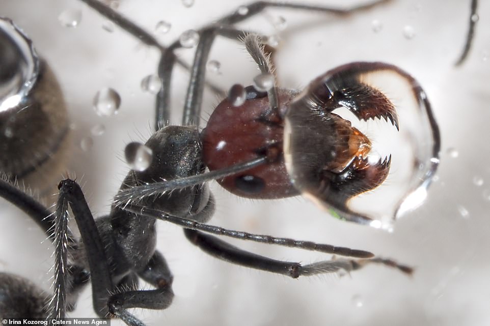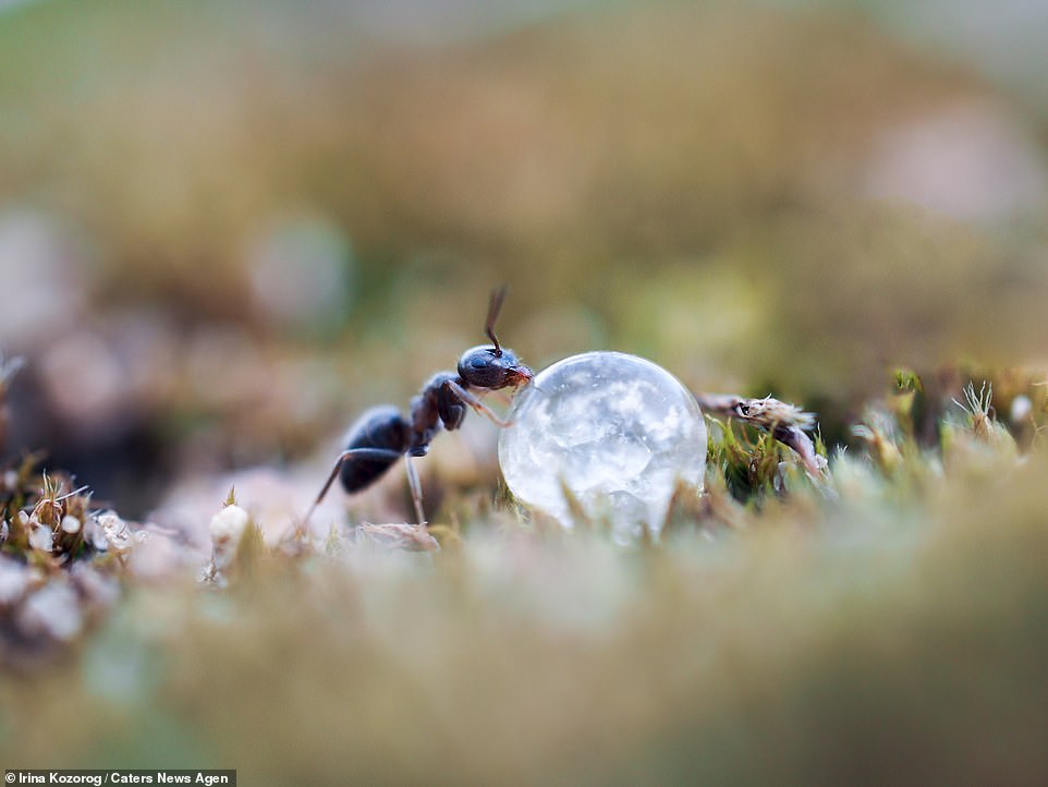 Photos de fourmis en rapport avec l'eau par Irina Kozorog, 43 ans, dans des forêts russes (Lien avec de nombreuses photos). Merci Ewa Joanna Godzinska (mail 29 janvier 2023). Quelques photos :