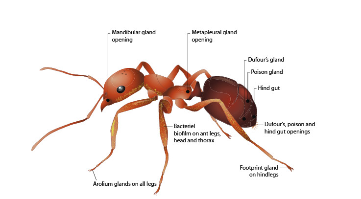 (les secrétions des glandes mandibulaires des fourmis inhibent le développement