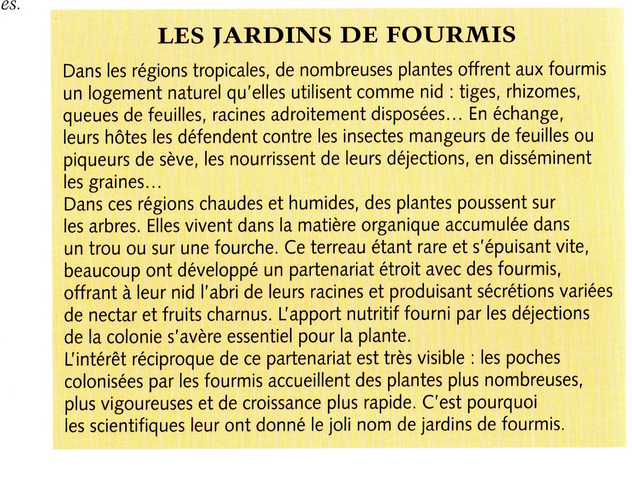 - Myrmécophytes : plantes supérieures qui entretiennent une relation