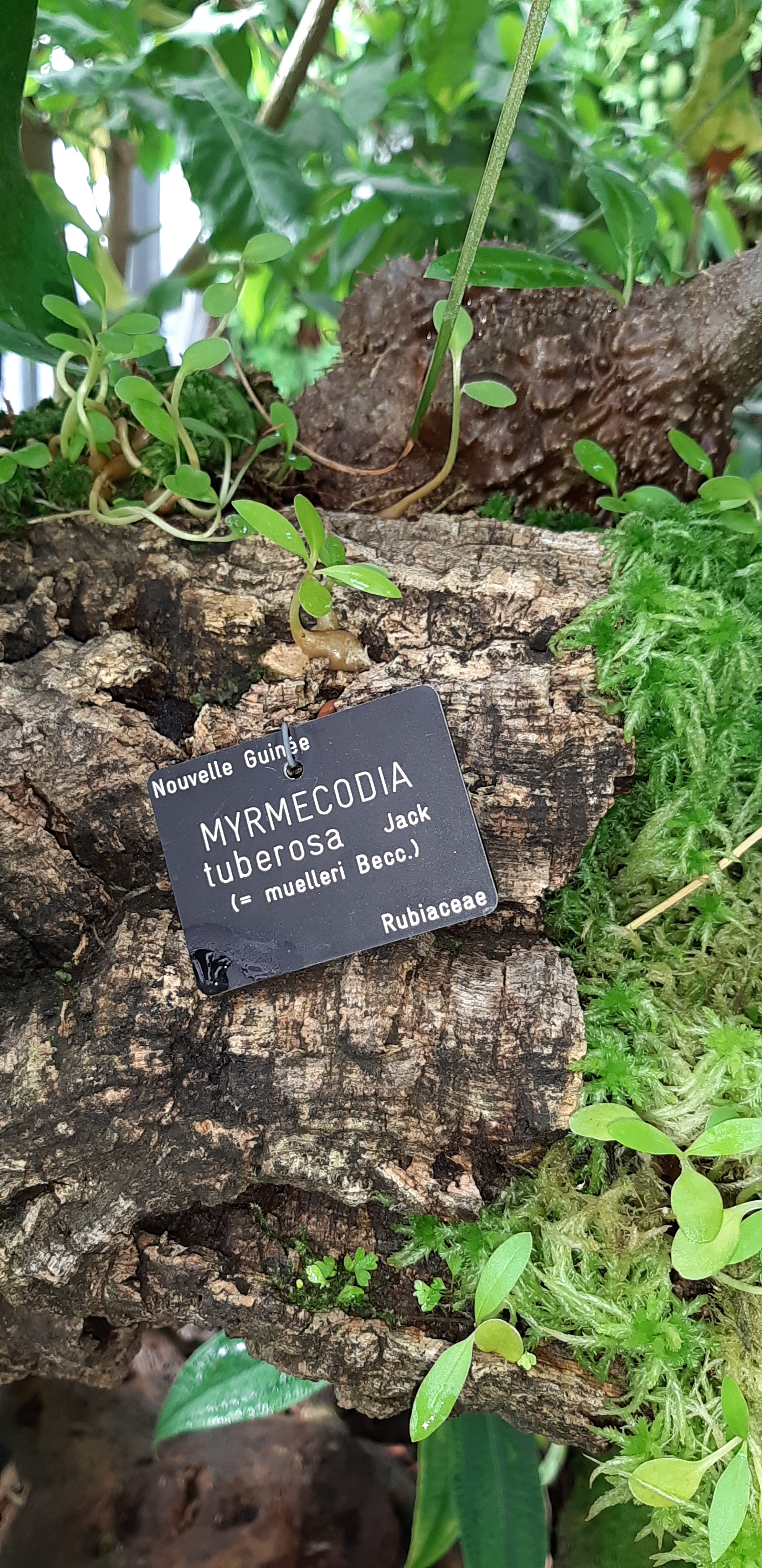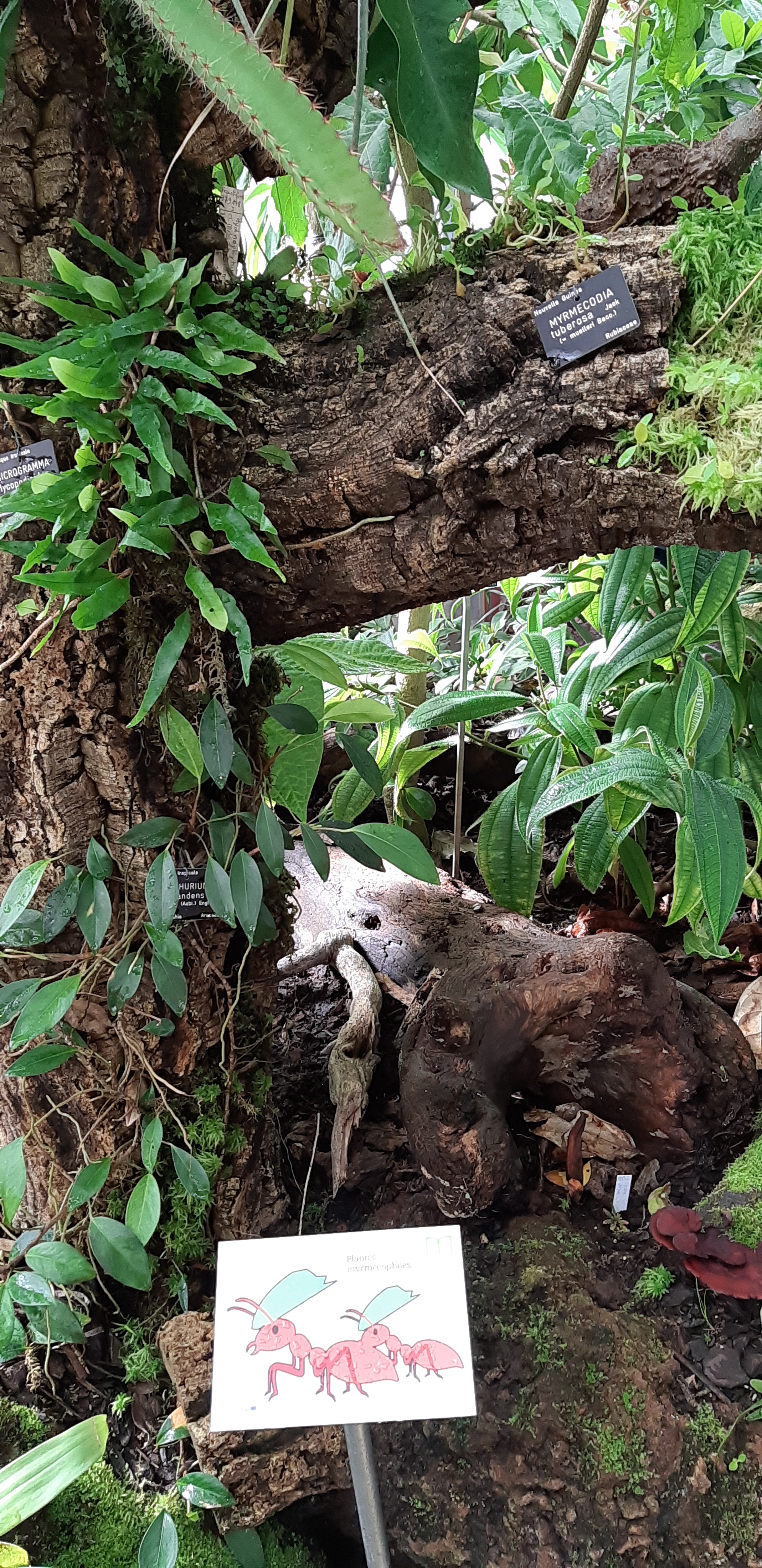 Grandes serres tropicales avec des plantes myrmécophytes tropicales et des plantes carnivores.