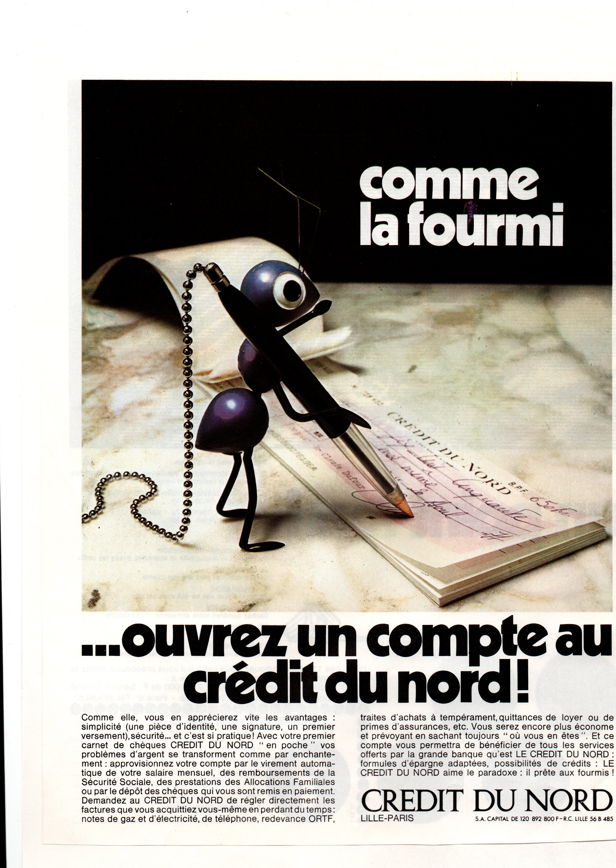 Le Crédit du Nord : "Comme la fourmi ouvrez un compte au crédit du nord !" Date ? C'était en francs