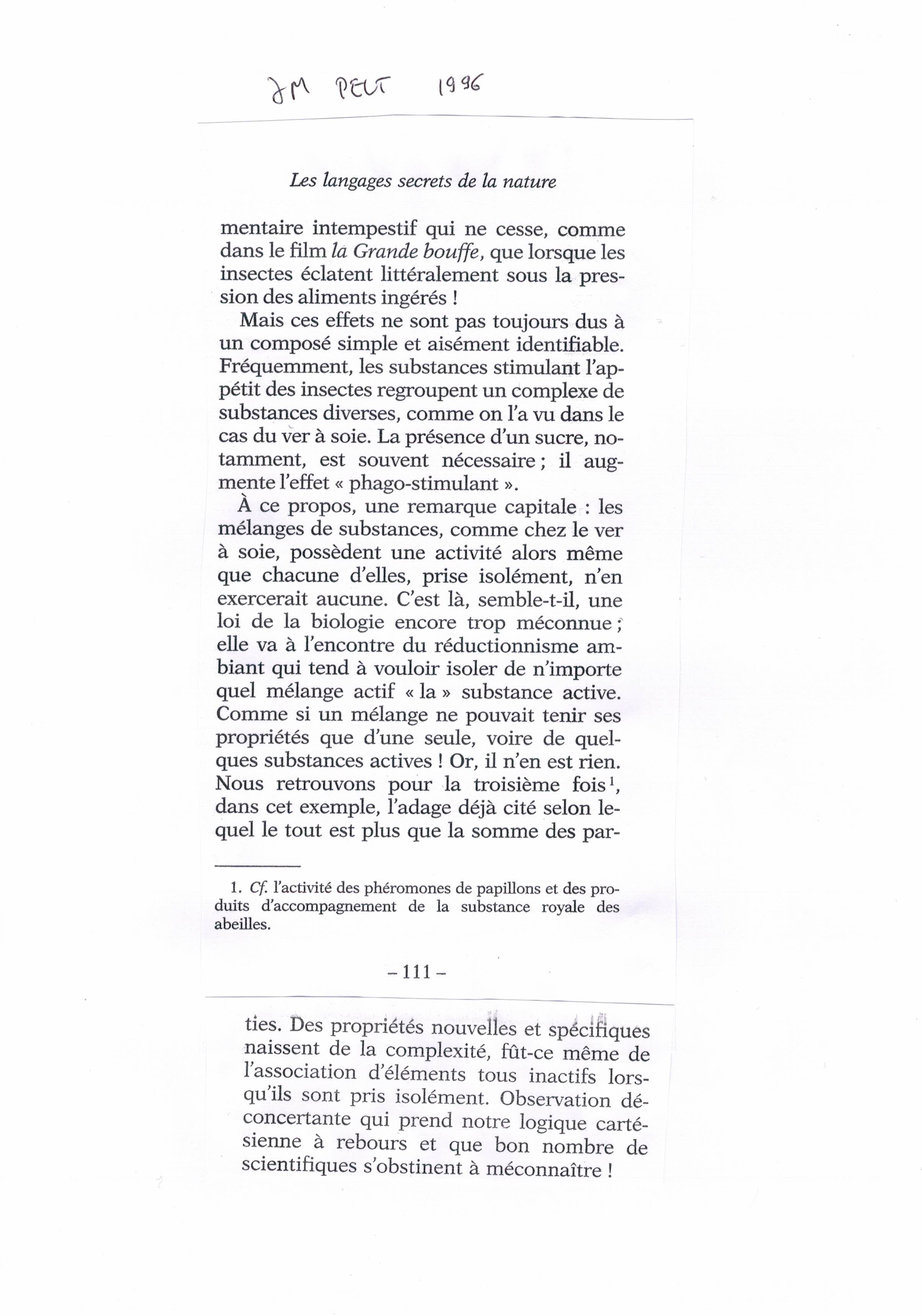 - Pelt, J.-M. (1996). Les langages secrets de la nature, Fayard. 298p.
