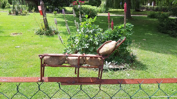 De belles fourmis en pierre et fer sur une clôture à Cadillon (64)